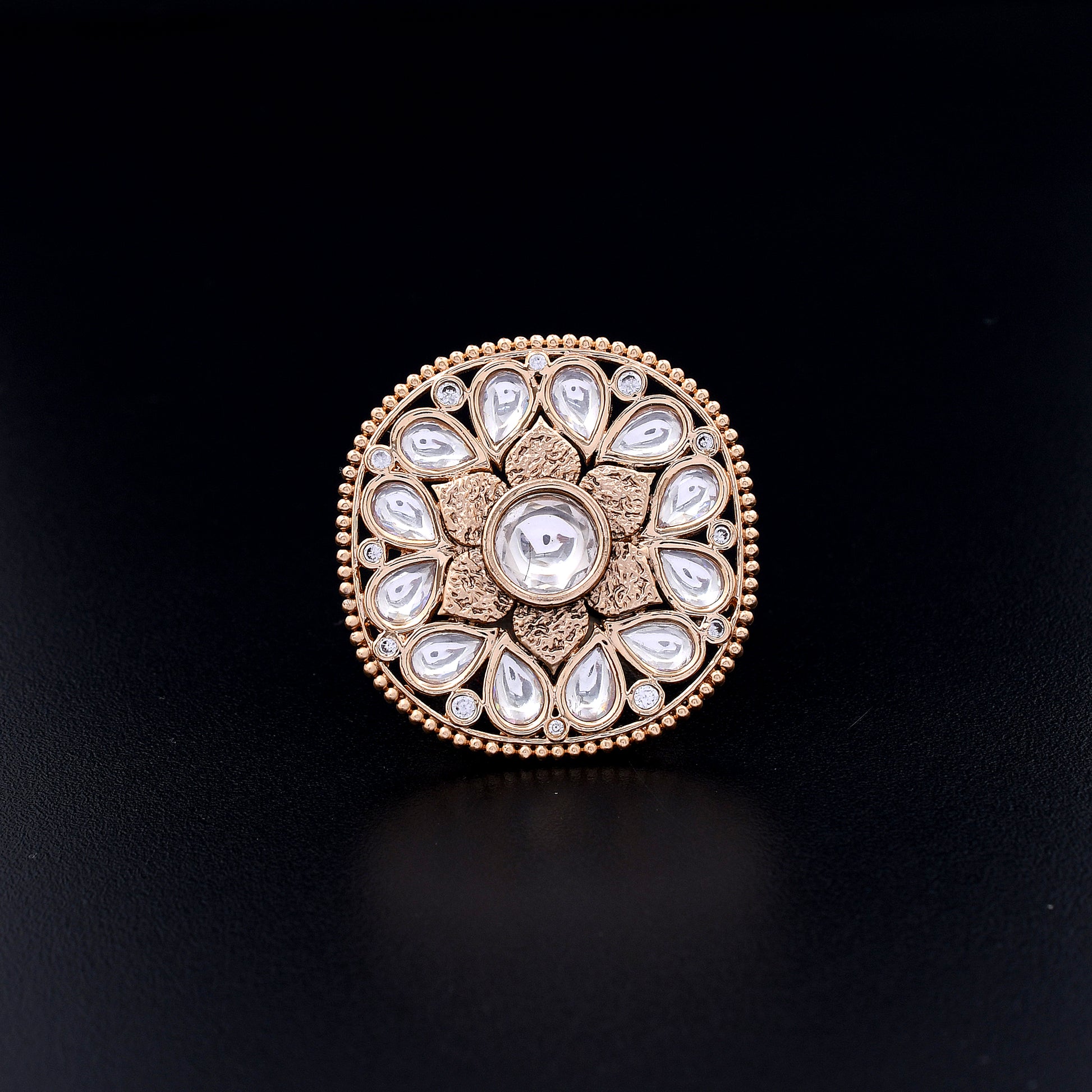 Kamya | Champagne Gold Meenakari Ring with Radiant Polki Inlay, Exuding Traditional Elegance and Cultural Splendor